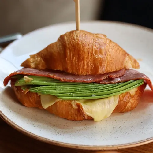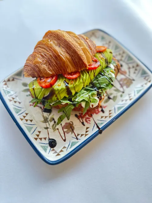 Копченая говядина, сыр, половинка авокадо