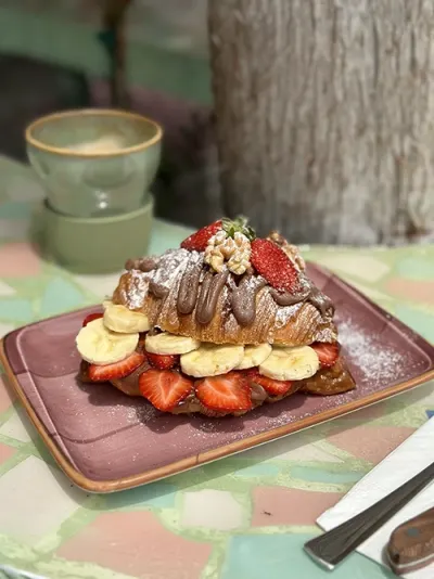 Нутелла, клубника, банан, грецкий орех, сахарная пудра